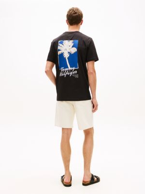 This crew neck T-shirt is made for sunny days, combining naturally airy pure cotton jersey fabric with a bold palm tree print.