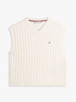 Make preppy layering effortless with this pure cotton sweater vest, featuring a traditional cable design in a luxe mid-gauge knit.