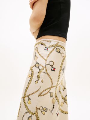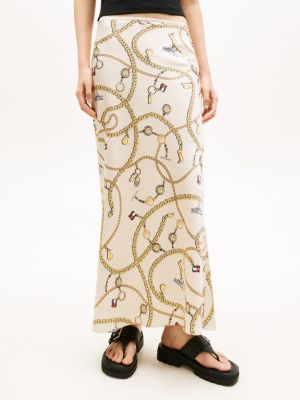 Capture a boho vibe in this maxi skirt, featuring a crinkled finish and an all-over chain print for a laid-back festival look.