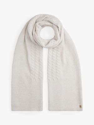 Add a tactile touch to your cold-weather outfits with this fluffy cable knit scarf, made from a luxurious wool blend.