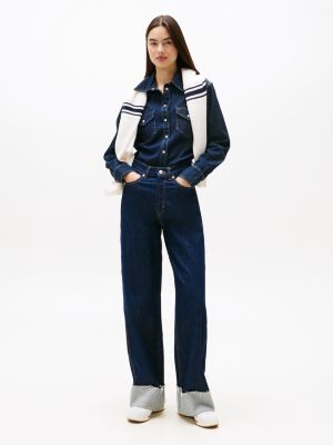 These high-rise jeans are cut in a cool wide-leg shape and are finished with turn-up hems for a retro-inspired look.