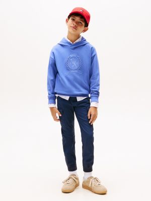 Keep cosy on chilly days in this stretch cotton blend interlock hoody, with prominent crest embroidery for signature style.