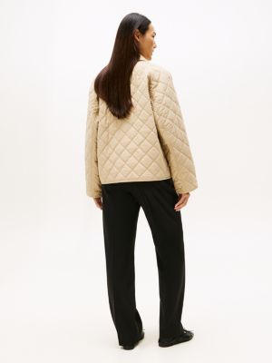 This versatile mac coat features a diamond quilted design and a practical water-repellent finish, while the oversized silhouette adds a modern edge.
