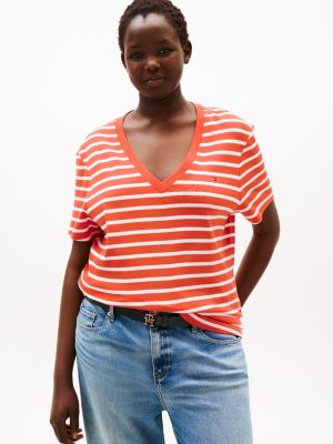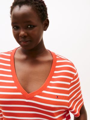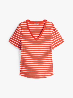 A V-neck design and tightly woven pure cotton fabric with a silky finish elevate this slim-fit T-shirt to a versatile style staple.