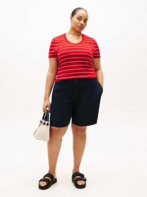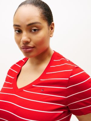 Curve Flag Embroidery V-Neck Slim T-Shirt
