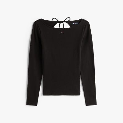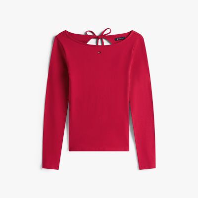 Add a touch of glamour to your wardrobe with this slim-fit top, featuring a diamante flag on the chest and tie detail.