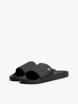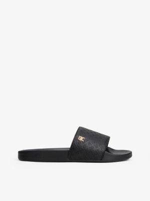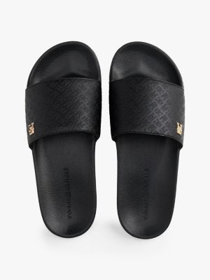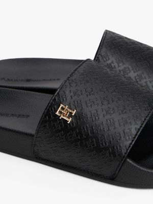Add statement vibes to poolside looks with these slides, featuring an embossed TH monogram pattern for a luxe aesthetic.