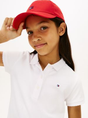 Bring sporty flair to relaxed days with this short-sleeved polo dress, featuring a neat collar and playful scalloped trims.