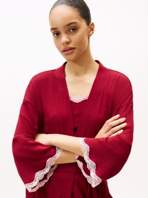 Essential Ribbed Lace Trim Robe