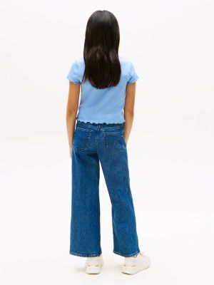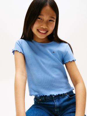 This stretch cotton ribbed top is cut in an extra-slim fit for a sleek shape and finished with delicate ruffle trims.