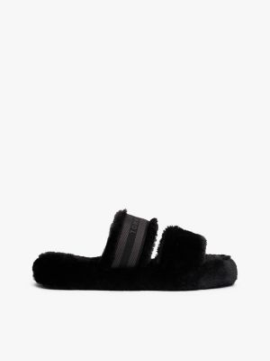 Faux Fur Woven Logo Slippers