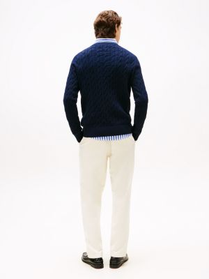The traditional cable-knit pattern adds timeless appeal to this versatile jumper that's crafted from pure combed cotton and finished with flag embroidery.