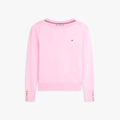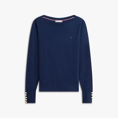 Add a sophisticated option to your knitwear with this lightweight jumper, featuring a flattering boat neck and chic gold-tone button detailing.