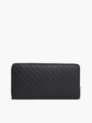 An all-over debossed TH monogram design enhances the elegance of this zip-around wallet that features numerous compartments and slots.
