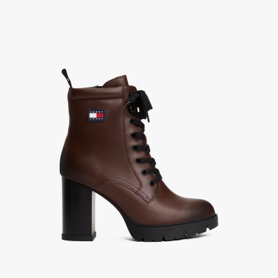 Give your look some attitude with these lace-up high heels, crafted from smooth leather with a zip closure and solid block heel.