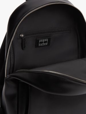The streamlined aesthetic of this dome backpack is punctuated by the premium plaque branding and tactile charm details.