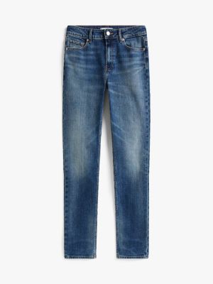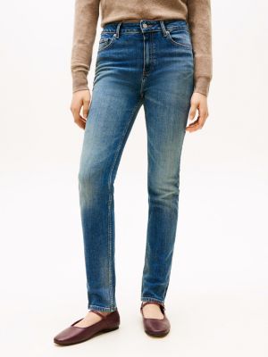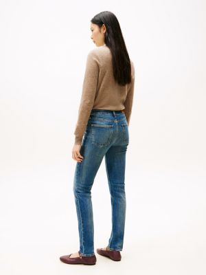 These medium-rise jeans in a sleek slim fit offer a touch of vintage charm with their faded finish and worn-in whiskering.