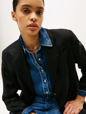 Relaxed Linen Blend Single Breasted Blazer