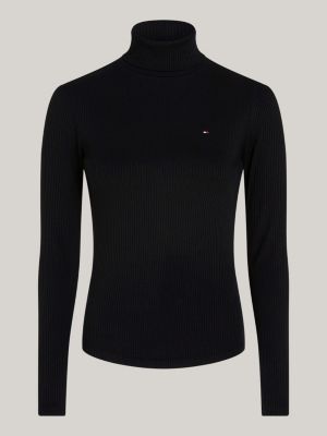 This sophisticated turtleneck top is crafted from a flexible ribbed fabric that complements the slim fit, creating a form-fitting silhouette.