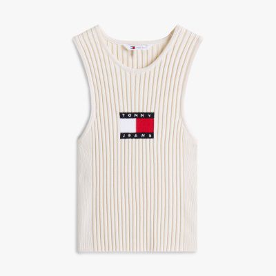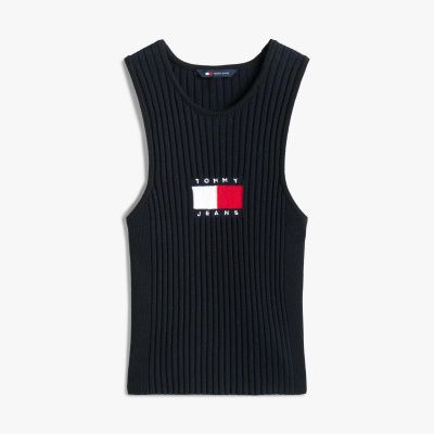 This tank top is a go-to piece for evenings out, with its flattering racerback shape and stylish all-over rib-knit design.