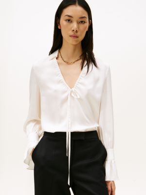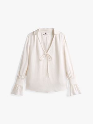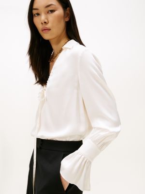 Sateen Ruffle Cuff Relaxed Fit Blouse