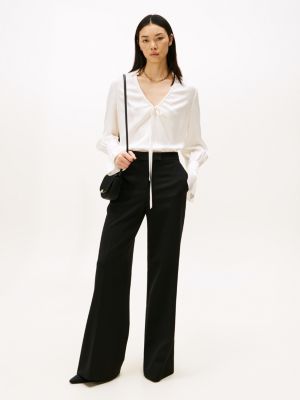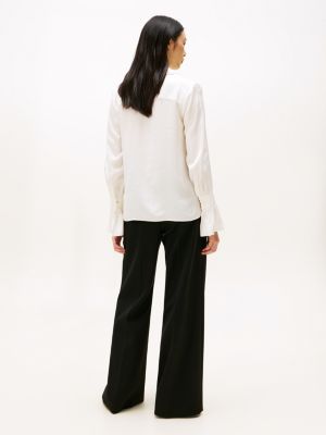 Inspired by formal dress codes, this sophisticated sateen blouse is crafted with ruffled cuffs and luxe gold-tone buttons for a statement finish.