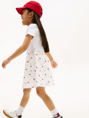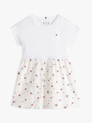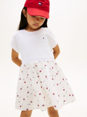 This summery fit-and-flare dress is cut from pure cotton, with a breezy seersucker skirt for a touch of traditional texture.