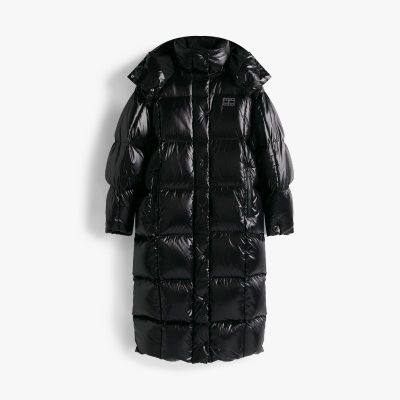 Wrap up warm in this cosy down puffer coat, made from practical water-repellent fabric with a statement shiny finish.