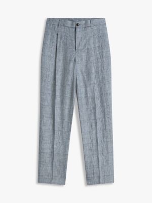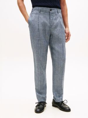 These tapered-leg trousers combine a timeless check design with a breezy pure linen fabrication and metallic branding for a premium look.