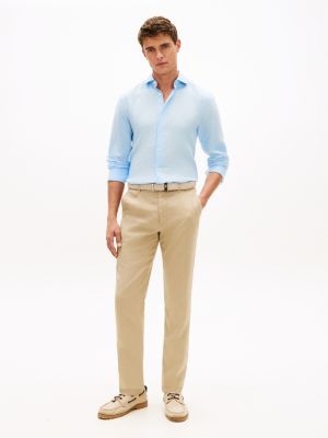 Cut in a slim fit from airy pure linen, this classic shirt will quickly become a staple for warmer days at work.