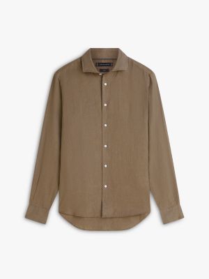 Cut in a slim fit from airy pure linen, this classic shirt will quickly become a staple for warmer days at work.