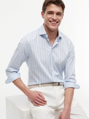 This striped shirt is cut in a slim fit from flexible four-way stretch fabric, while the cutaway collar offers an on-trend finish.