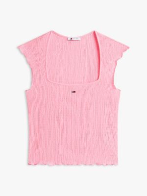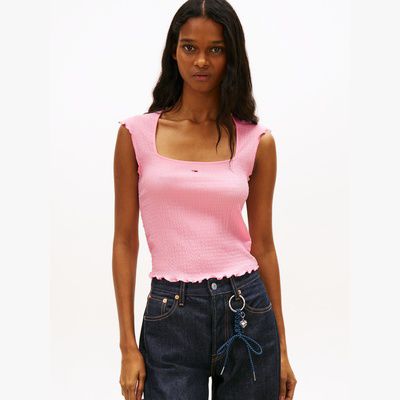 Add some Y2K energy to your wardrobe with this slim-fitting seersucker top, featuring all-over smocking and a square-neck silhouette.