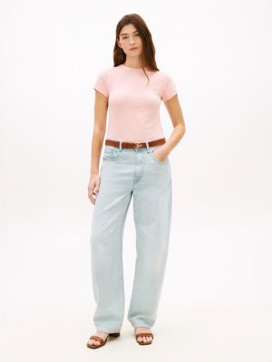 This modern staple T-shirt is cut in a form-fitting slim silhouette from textured slub cotton fabric that's brushed for softness.