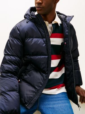 This hooded puffer jacket is the perfect gift for winter, featuring a warm down filling and an all-over tonal TH crest print.