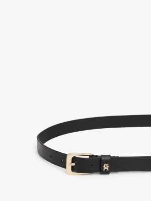 Add a final polish to any look with this sleek leather belt that showcases a gleaming TH monogram plaque on the keeper.
