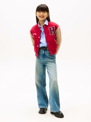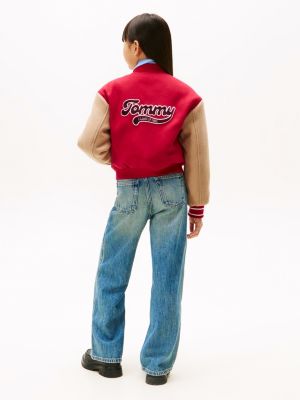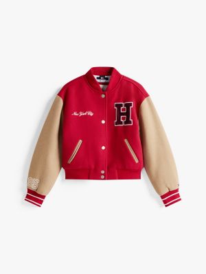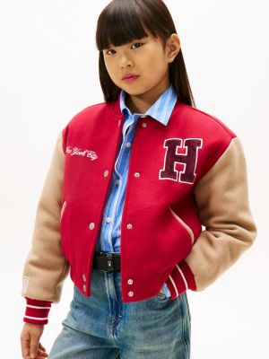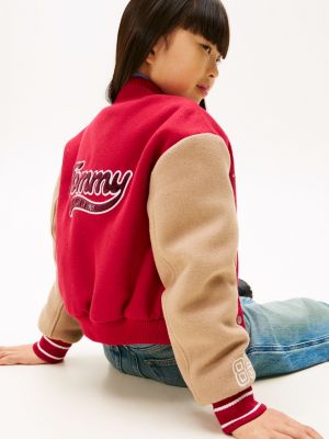 Get that classic collegiate look with this wool-blend twill letterman jacket, featuring a bold logo on the back and contrast sleeves.