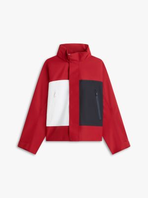 This colour-blocked regatta jacket is a statement piece for rainy days, featuring a toggle-cord waist and adjustable cuffs for a snug fit.